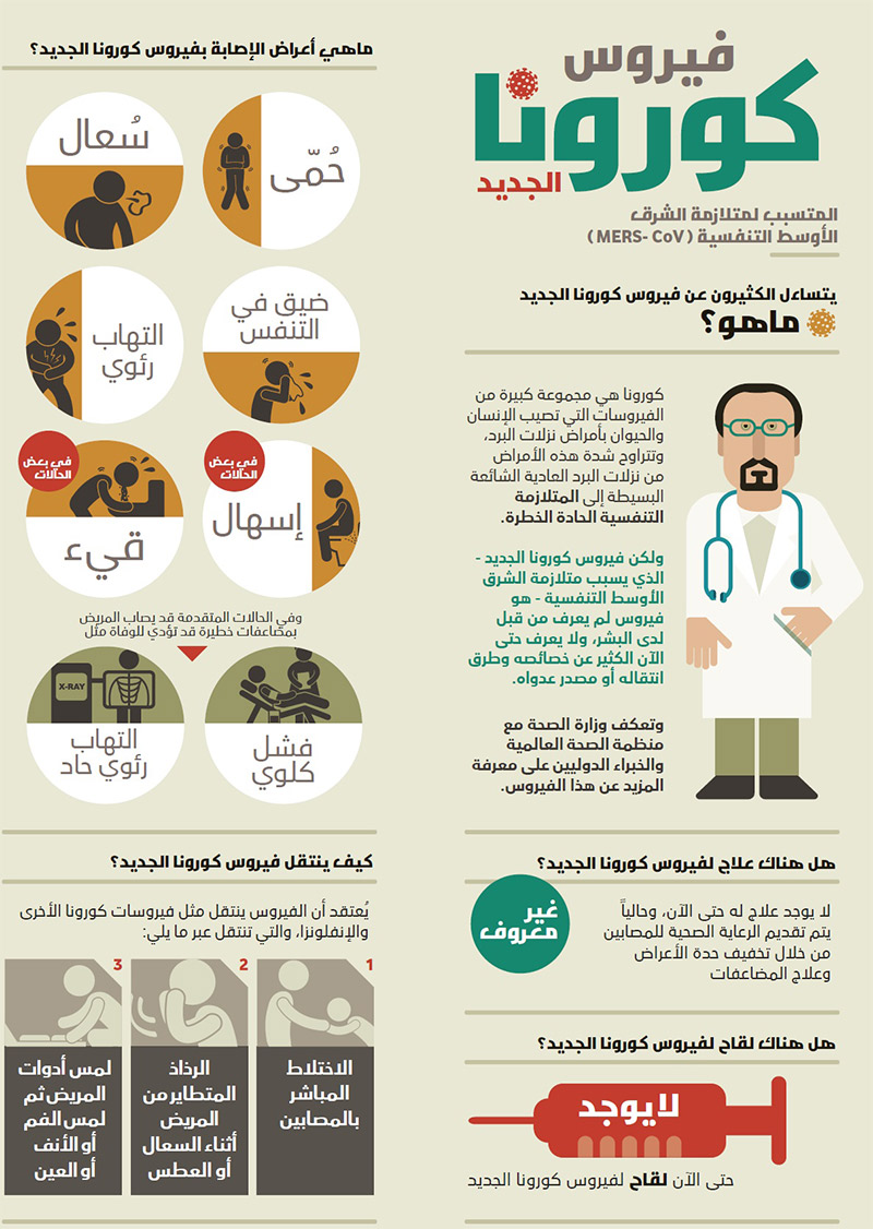 اعراض فيروس كورونا الجديد - الصحة تصدر نشرة توعية عن فيروس كورونا الجديد / ينتقل فيروس كورونا عن طريق القطيرات.. نعم يمكن الشفاء بإذن الله حيث تم شفاء 1198 حالة حول العالم حتى الآن. اكتُشفت فيروسات كورونا لأول مرة عام 1960، لكن مصدرها ما يزال مجهولًا، وتعود التسمية (corona) إلى كلمة (crown)، التي تعنى التاج، فهذه الفيروسات تشبه التيجان في شكلها، ويصاب جميع الأشخاص تقريبًا بأنواع من هذه الفيروسات أثناء حياتهم. فيروسات الكورونا هي مجموعة كبيرة من الفيروسات المعروفة بتسببها بالأمراض لدى الحيوانات ومن الممكن أن تؤدي كذلك إلى الإصابة بالأمراض لدى البشر درجة الإصابة لدى البشر تختلف من الممكن أن تكون خفيفة مثل الزكام. من غير الآمن استلام البضائع من الصين. ويعني السعال المستمر السعال لفترة طويلة وبكثرة لمدة.