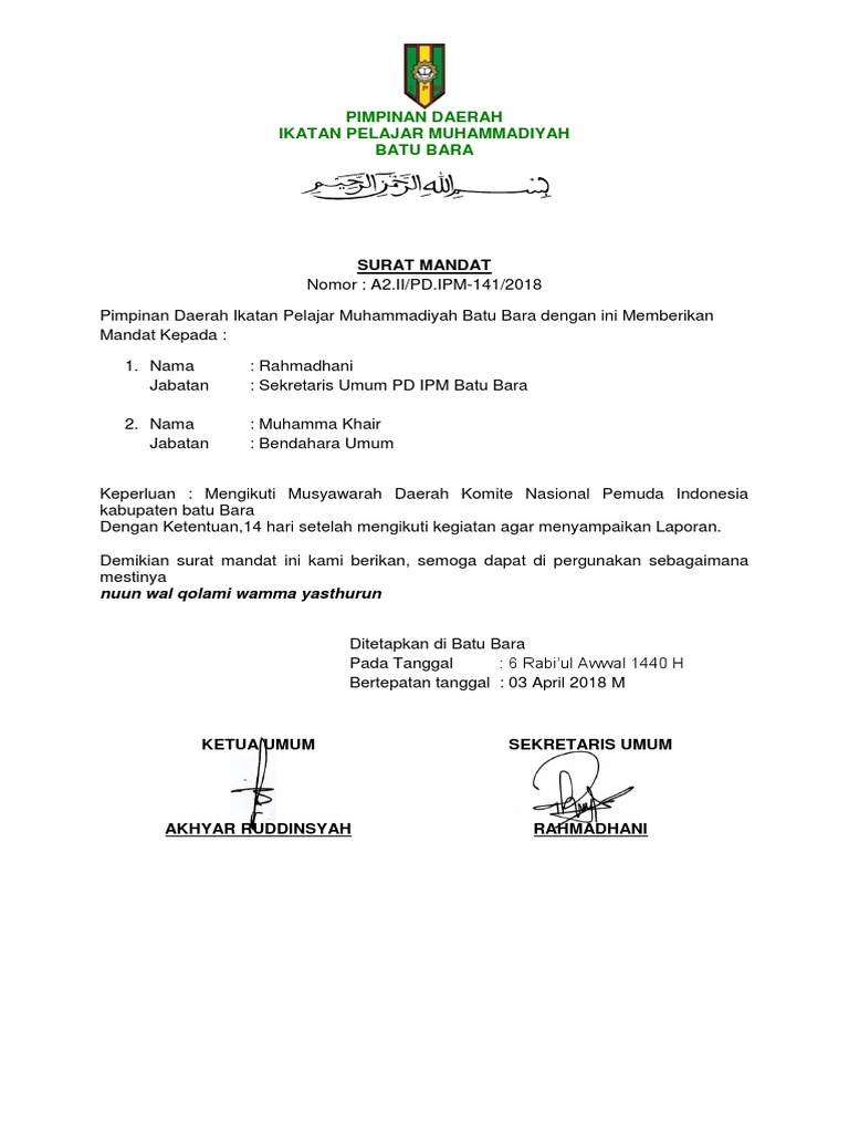 Savesave contoh surat mandat for later. Download contoh surat undangan tahlil dan syukuran terbaru apk. Contoh surat mandat partai yang baik dan benar sebagai referensi pembuatan surat resmi yang profesional. Dalam pelaksanaan suatu kegiatan rapat, kita tidak bisa begitu saja mengadakannya tanpa suatu. Demikian surat mandat ini dibuat untuk dapat digunakan sebagaimana mestinya. Demikian surat undangan ini kami buat, atas perhatian dan partisipasi serta kehadirannya kami ucapkan, terima kasih. Contoh surat undangan resmi sangat banyak, namun pada umumnya memiliki tujuan yang sama, yakni mengundang pihak lain untuk menghadiri sebuah kegiatan. Wallahul muwafiq ilaa aqwamith thooriq limpung Bagi anda yang sedang membutuhkan contoh surat mandat dari mabigus dalam rangka kegiatan pramuka, bisa didownload melalui link di akhir postingan. Contoh surat lamaran kerja yang baik dan benar sesuai dengan eyd (ejaan yang disempurnakan) untuk melamar pekerjaan di berbagai instansi di bawah ini beberapa contoh surat lamaran kerja yang baik dan benar yang dapat anda jadikan referensi, baik itu untuk perusahaan maupun instansi. 16 contoh surat balasan penawaran penelitian pemesanan dan. Download lagu contoh surat mandat (8.18mb) dan streaming kumpulan lagu contoh surat mandat (8.18mb) mp3 terbaru di hasil diatas adalah hasil pencarian dari anda contoh surat mandat mp3 dan menurut kami yang paling cocok adalah contoh surat mandat. Contoh surat mandat pelaksana tugas.